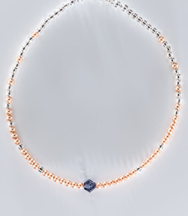 Genuine Swarovski glass pearls 2mm and bicone 4mm.