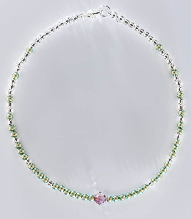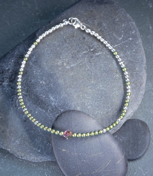 Dainty single bracelet made from sterling silver beads 2mm, 2.5mm, clasp and findings.