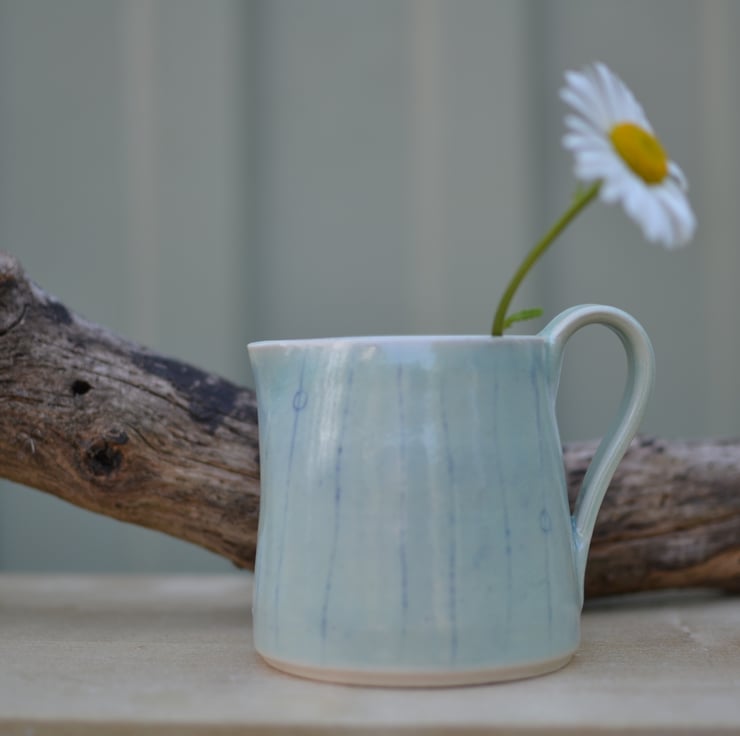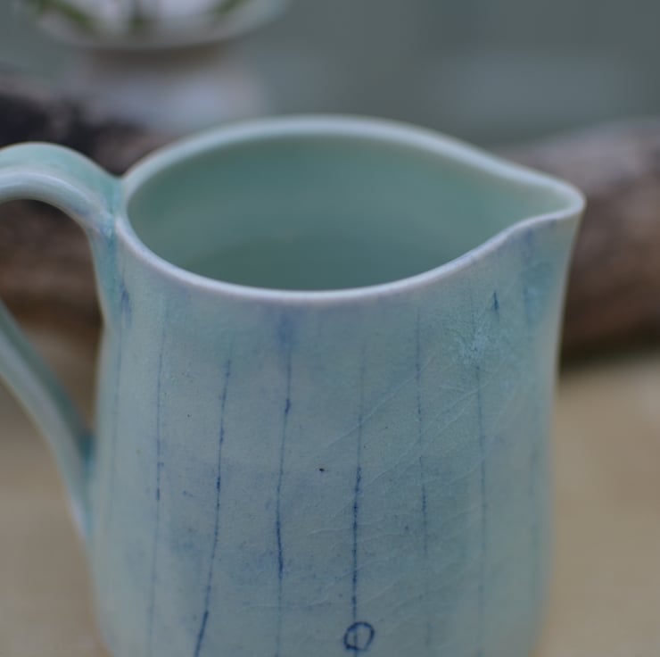 This ceramic jug is made from natural materials using as few resources as possible. With a delicate green glaze it has a simple, undulating design that reflects the patterns the sea leaves in the sand as the tide goes out. This jug forms part of my Horizons collection of handmade pottery.