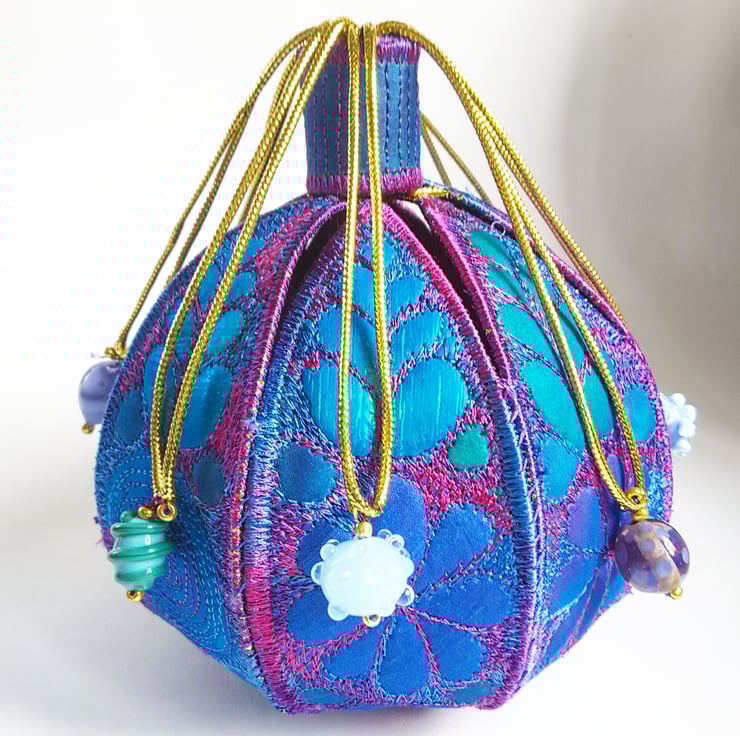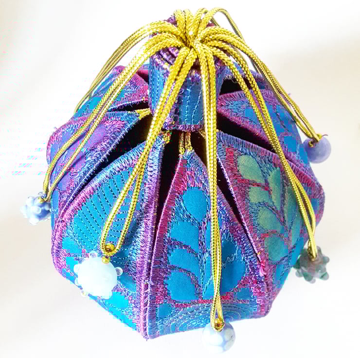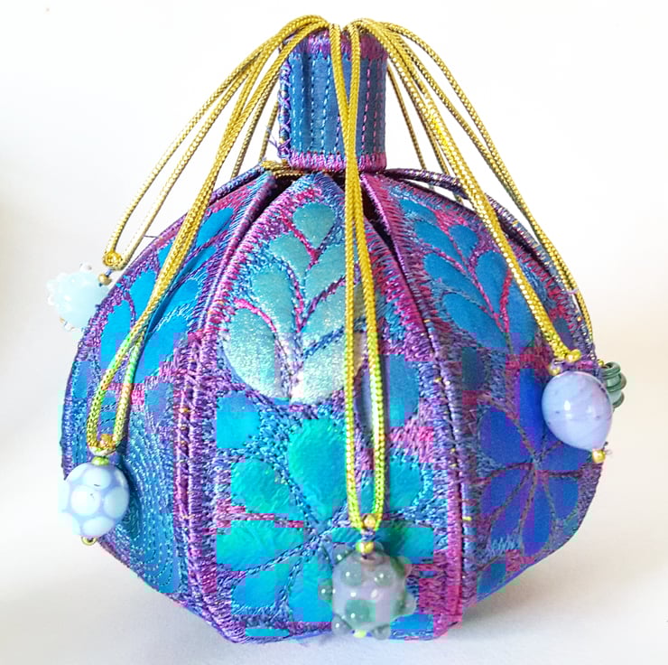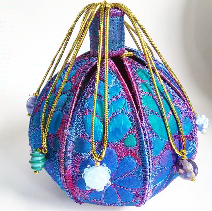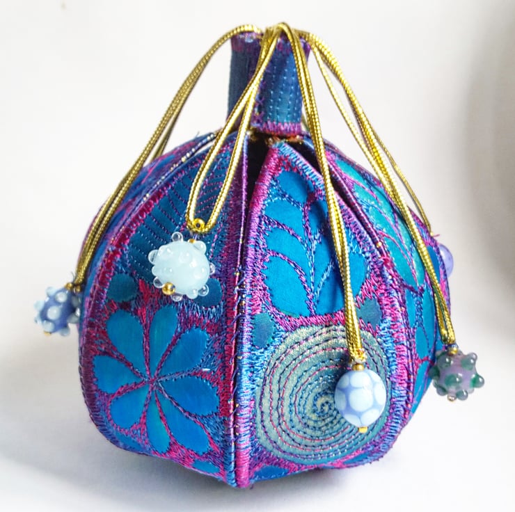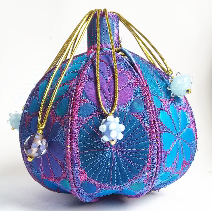 This is a handmade machine stitched fabric textile 3D pod