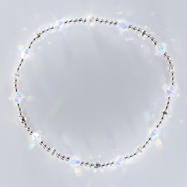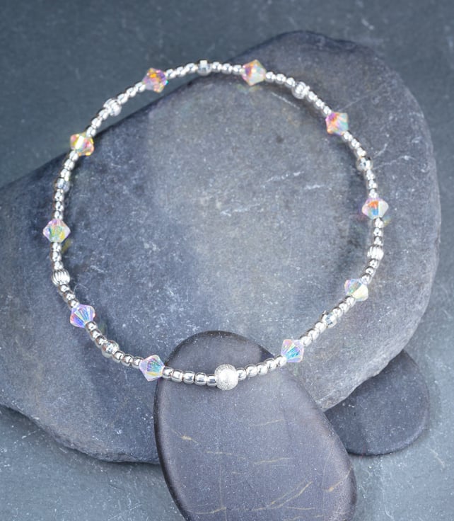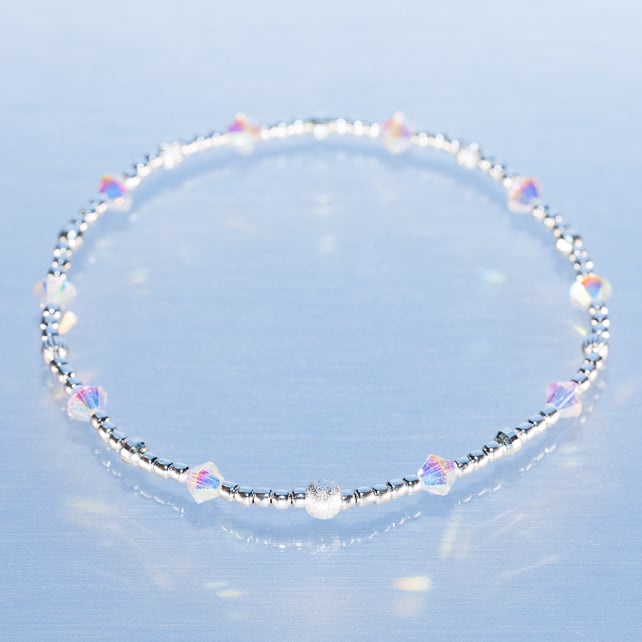 Not everyone wants charms on their bracelets, so we wanted to make some dainty, sparkly, charm free bracelets. The Swarovski bicones shimmer with rainbow colours in the sunlight to give a lovely sparkle.