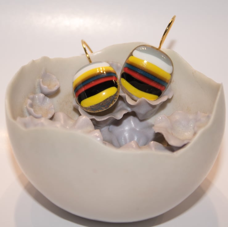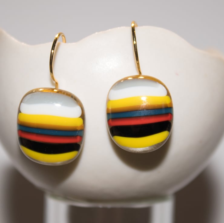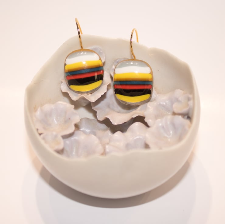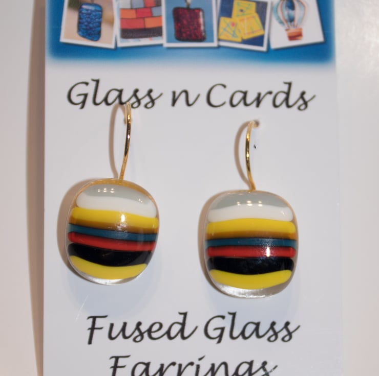 Part of our 'Stringers' collection of Fused Glass Jewellery, these earrings are made from our own recipe striped glass.