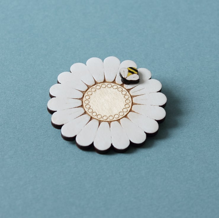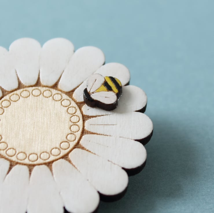 Jolly little hand painted daisy brooch, complete with tiny bee, to add a bit of summer to your outfit, even in the darkest of winter months!