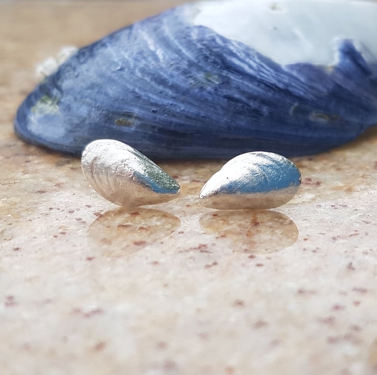 These lovely ear studs are made from real tiny muscle shells cast into solid fine silver.