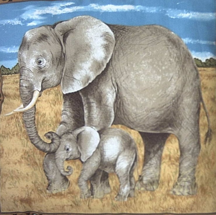 On Safari cushion with an Elephant and young walking across a grassy plain, would look good in any lounge, sitting room, study or office on any settee or armchair or in a conservatory or summer house or on a bed.