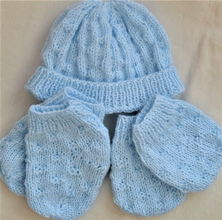Baby's Basket Weave Hat Set, Baby Shower Gift, Custom Make, Prem Sizes Available, Hand Knitted Hat Set, Baby Hat, Baby Mitts, Baby Socks, New Baby Gift, Christening Gift, Baby Accessories