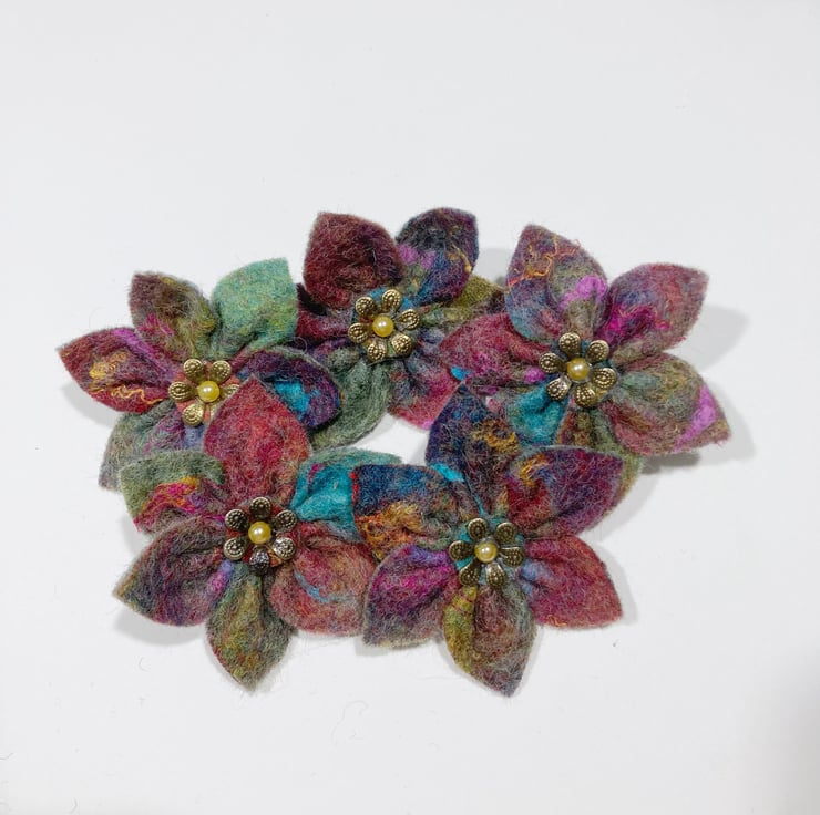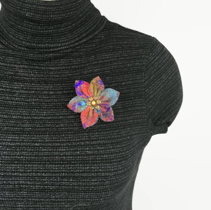 Brooches made using merino wool fibres are also available in my shop which result in slightly brighter colours (see final photo)
