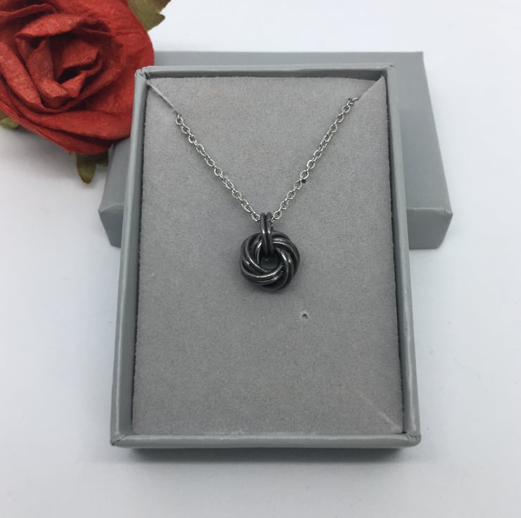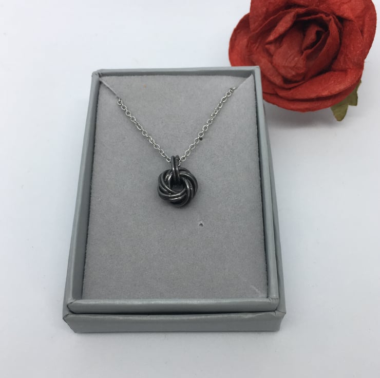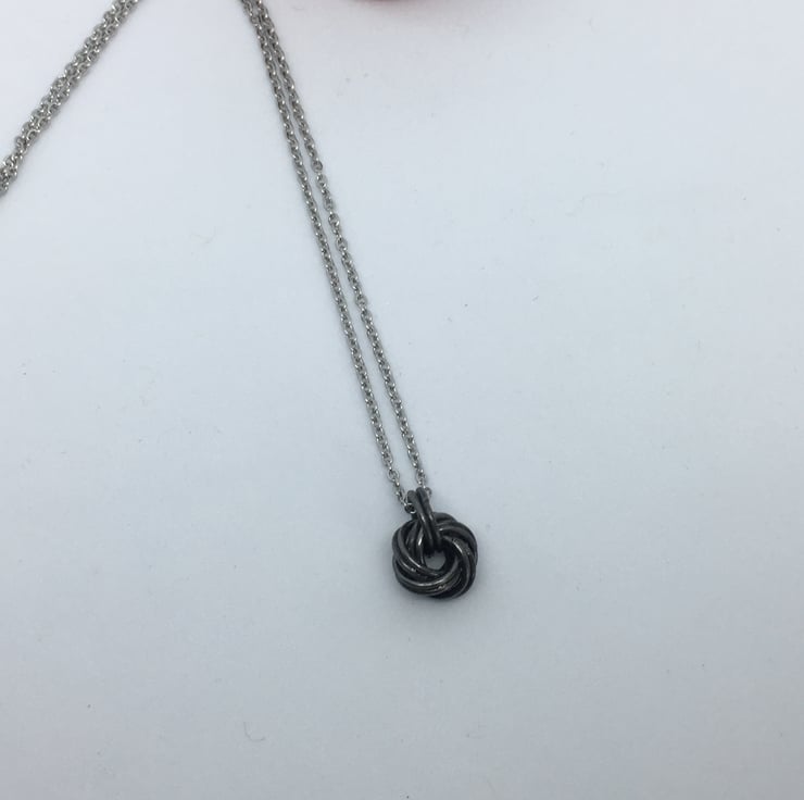 This simple minimalist style necklace is is perfect to wear everyday. The love knot pendant has been polished and sealed is ready to wear.