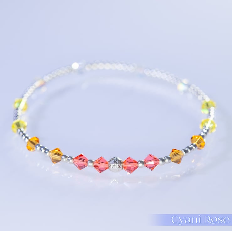 Bracelet dainty sterling silver with topaz Swarovski bicones