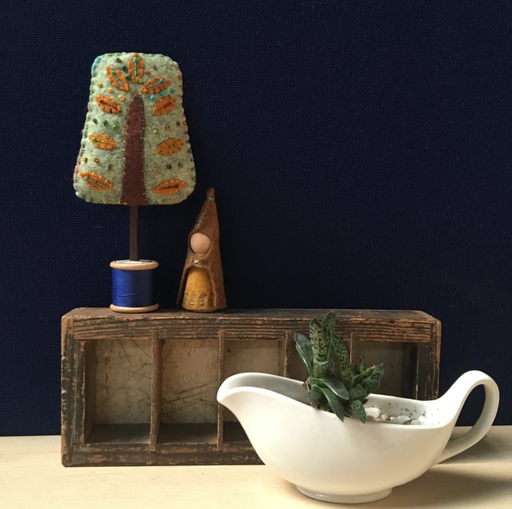 This listing is for the little dusty green tree only, with the mustard felt leaves.