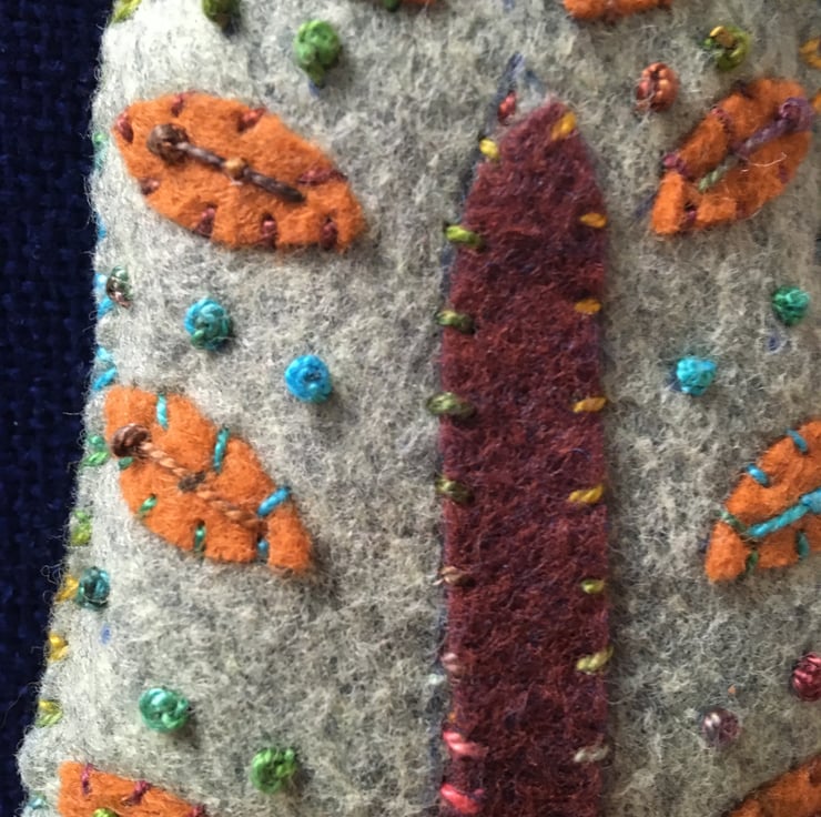 My own design, everyone is different and quirky. Hand embroidered with wonderful variegated pearle thread.