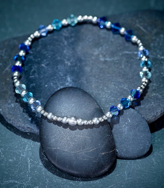 Dainty single bracelet made from sterling silver beads 2mm, 3mm and 4mm.
