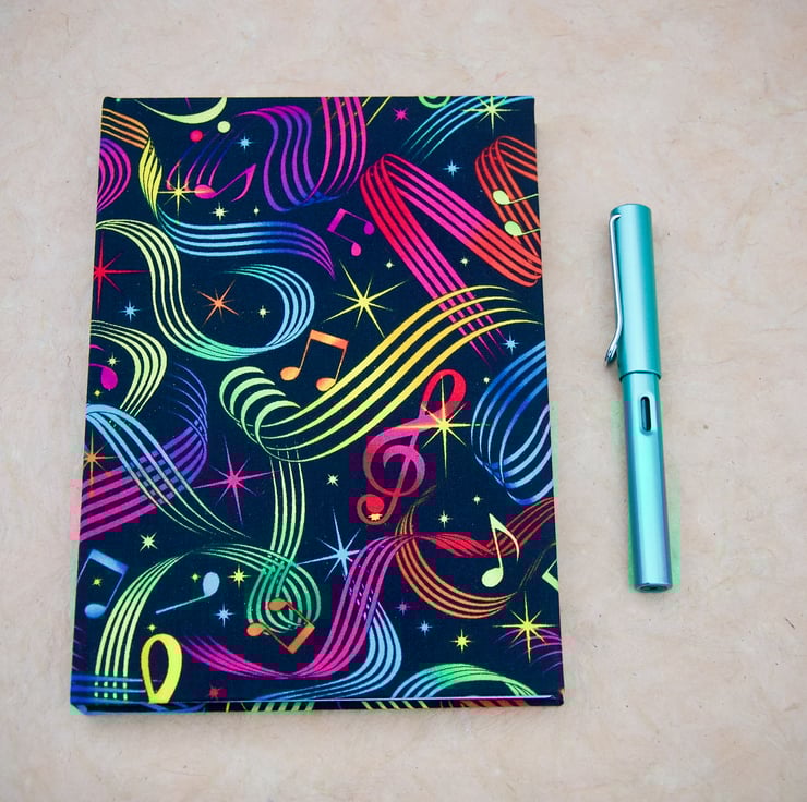A5 Hardback Notebook with full cloth colourful music cover.