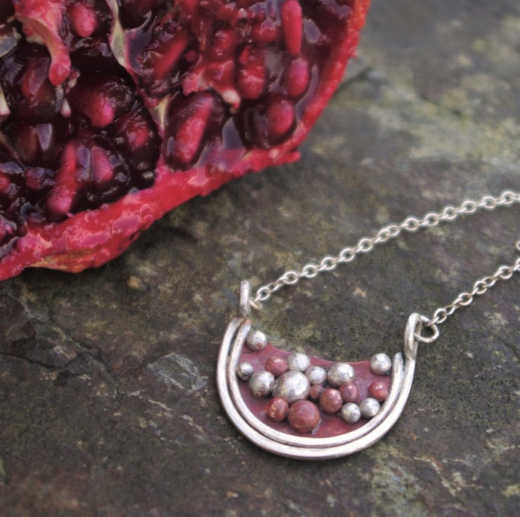 Inspired by the luscious red seeds inside a pomegranate; which symbolises life and fertility.