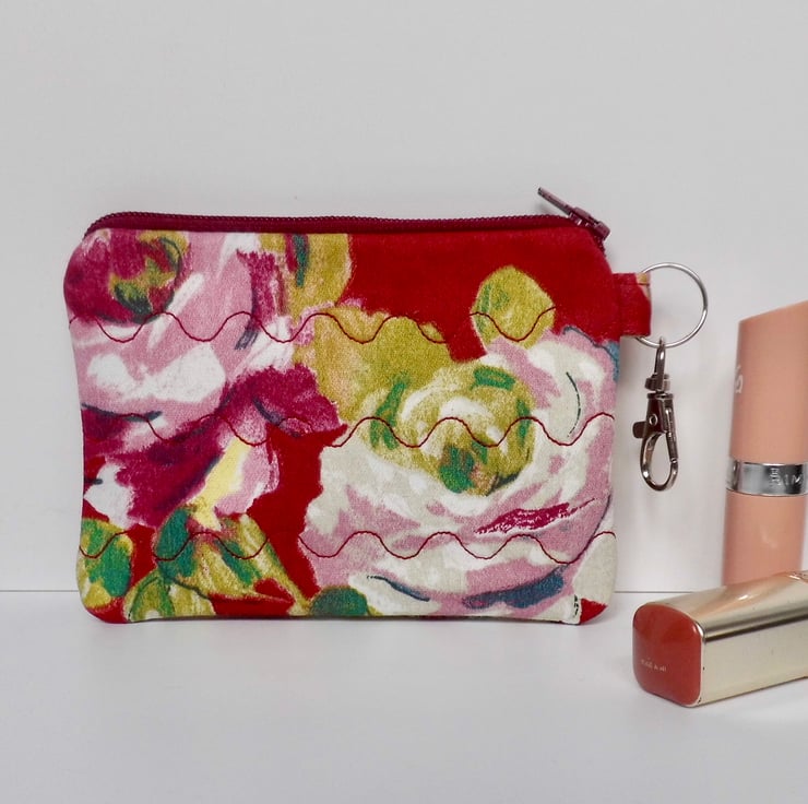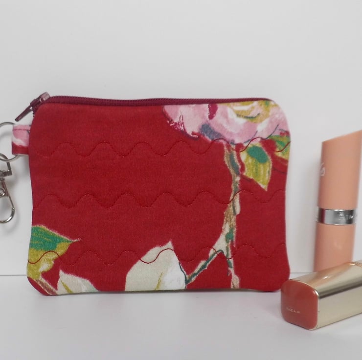Plus matching purse which measures approx 13cm x 9cm. it is lightly quilted with lines of wave stitching and has a burgundy zip across the top and a lobster clasp at one side.
