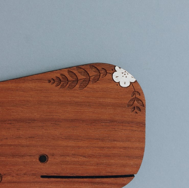 Inspired by the magnificent sperm whale (with a little artistic license!) this friendly whale has been etched with an pretty folk art inspired pattern with white hand painted flowers.
