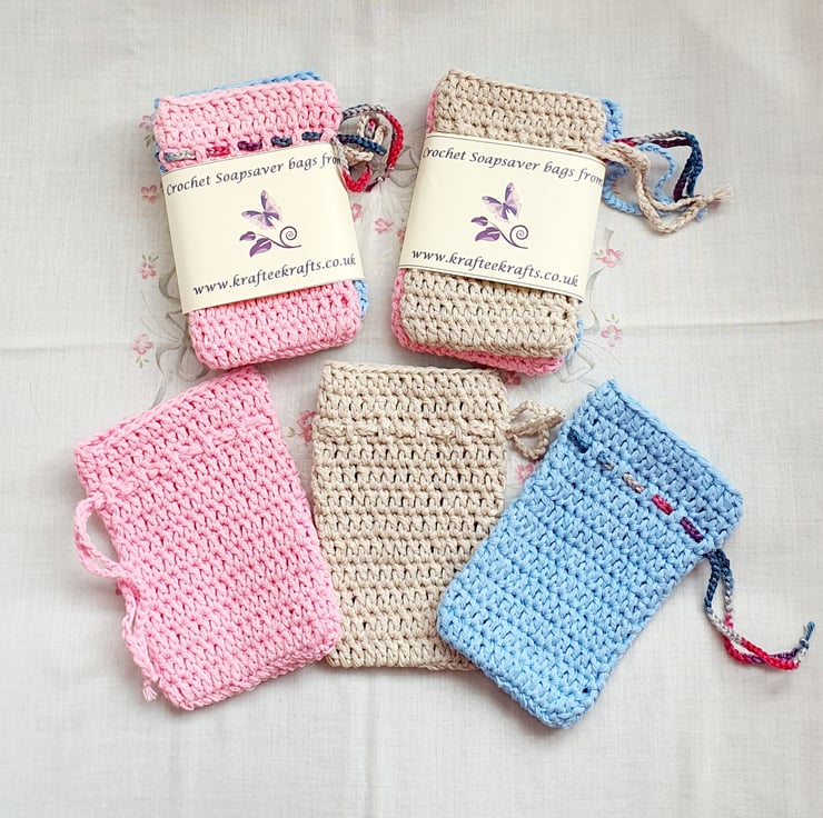 These crochet soap bags are excellent to put all your ends of soap bars in to use every last bit, plus just as lovely to use them with new bars of soap as well.