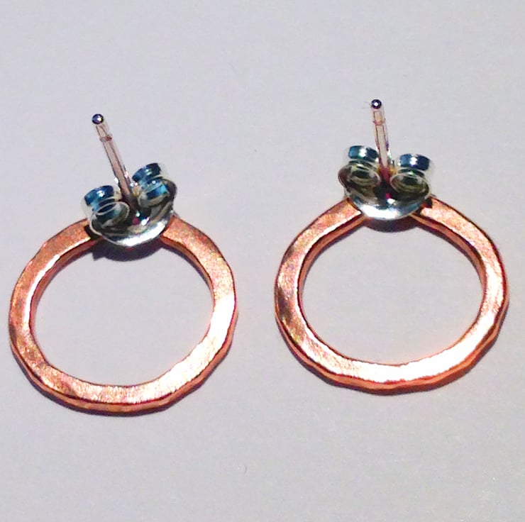 They have been given a hammered finish and soldered onto sterling silver posts with scroll backs.