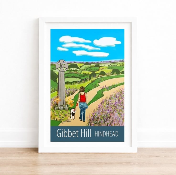 A contemporary travel poster style print of the view from Gibbet Hill near Hindhead and the Devil's Punch Bowl, from my own original acrylic painting. A perfect gift for those who love Hindhead!
