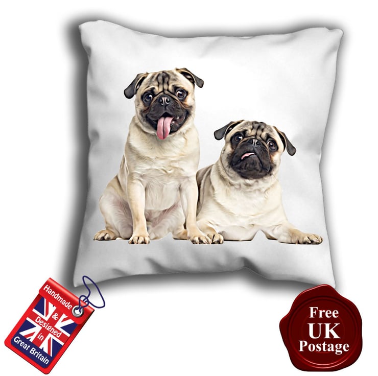 Pugs Cushion Cover, Pug Cover, Choose Your Size & Reverse Colour, Handmade with a zip for cover removal. Our Cushion Covers are designed and Printed by us Aggie’s Bags, our covers are overlocked to give it strength and structure.