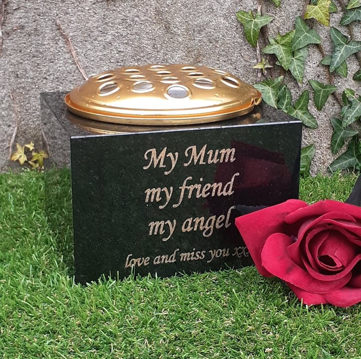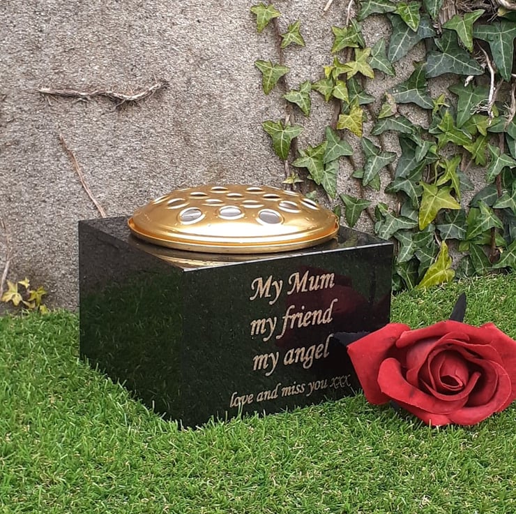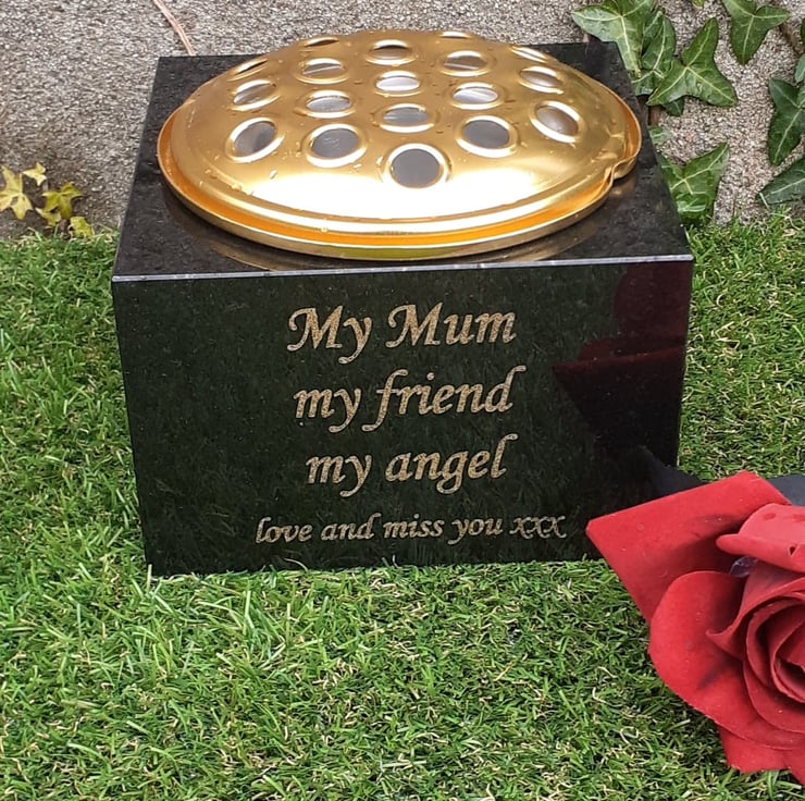 This listing is for a Black Highly polished Solid Granite Grave Vase.
