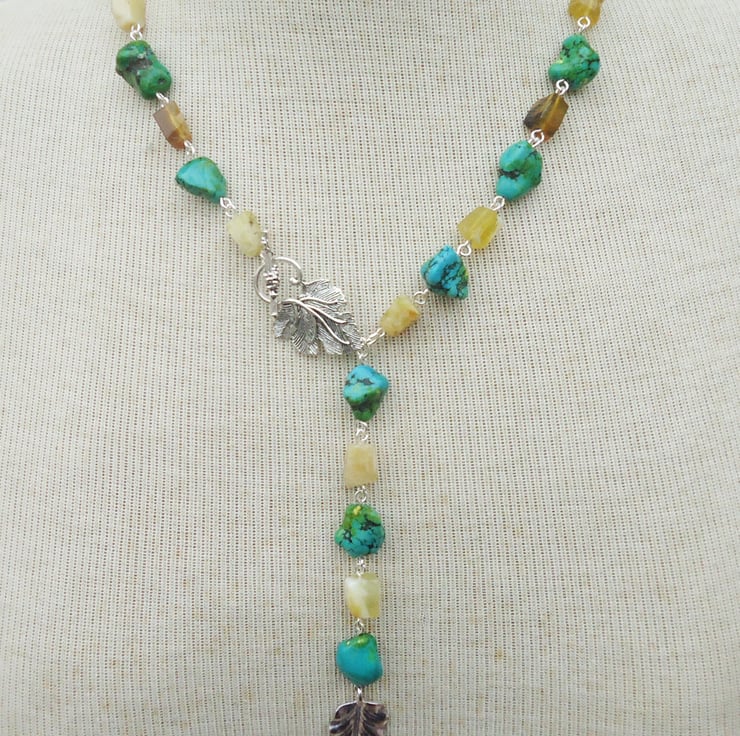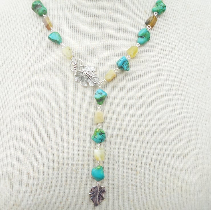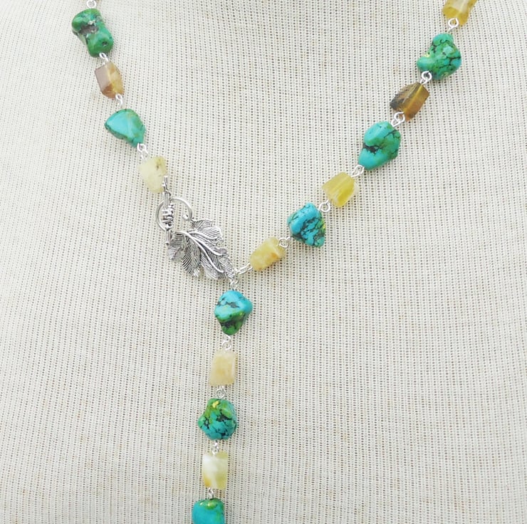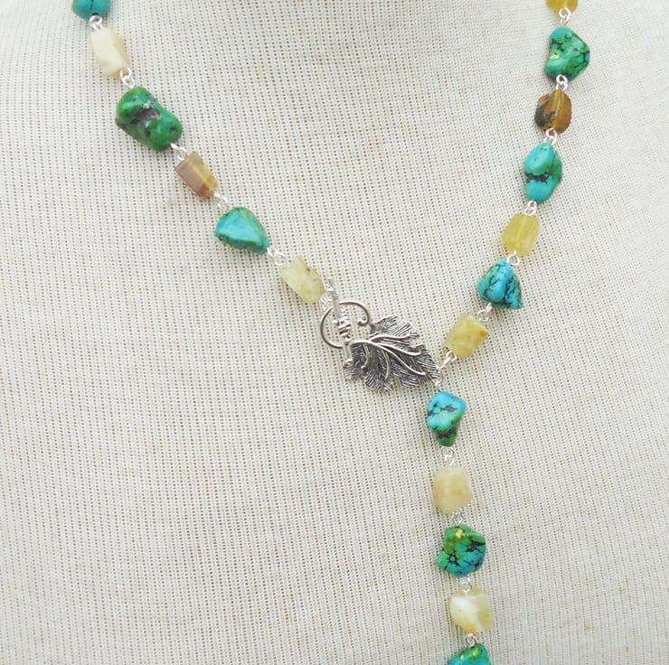 Turquoise and Yellow Opal Necklace, Turquoise and Opal Lariat