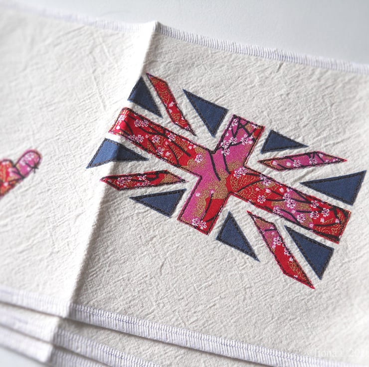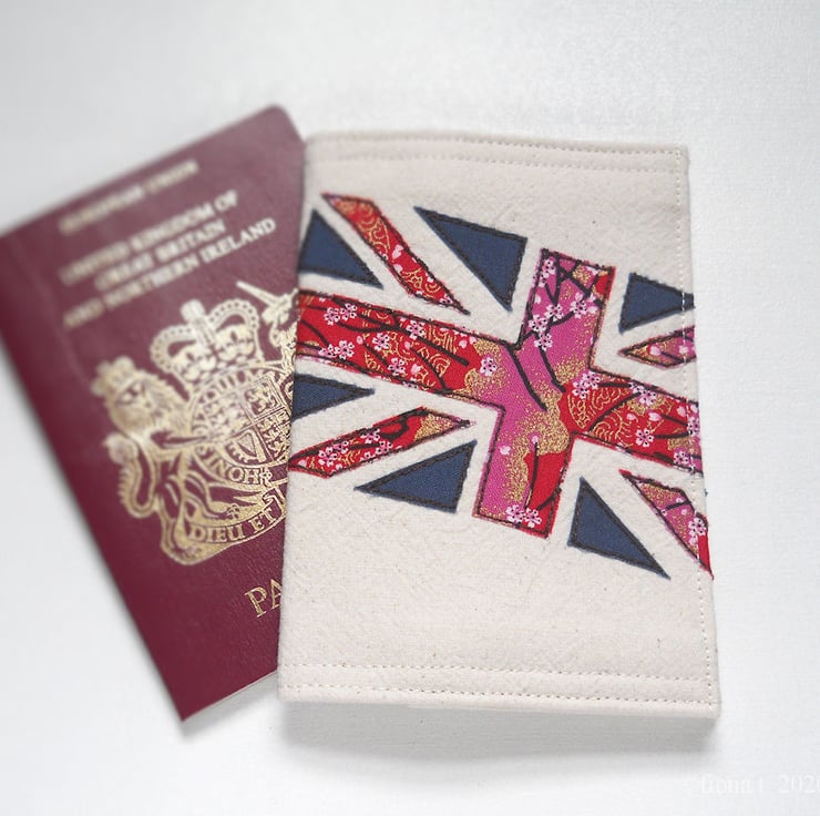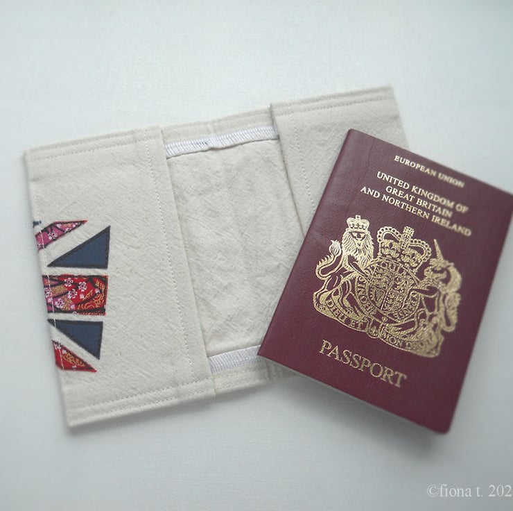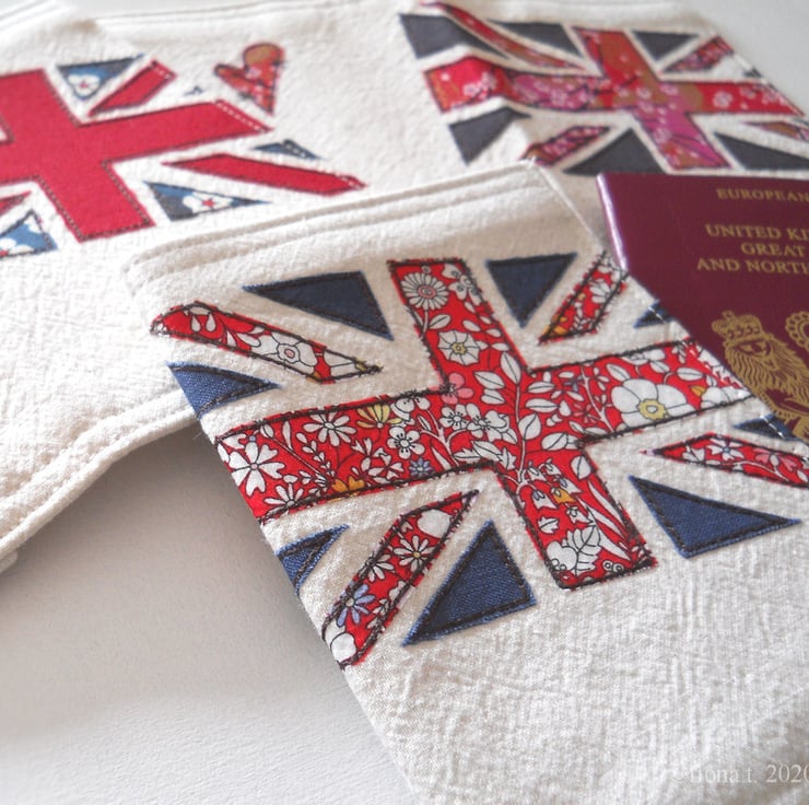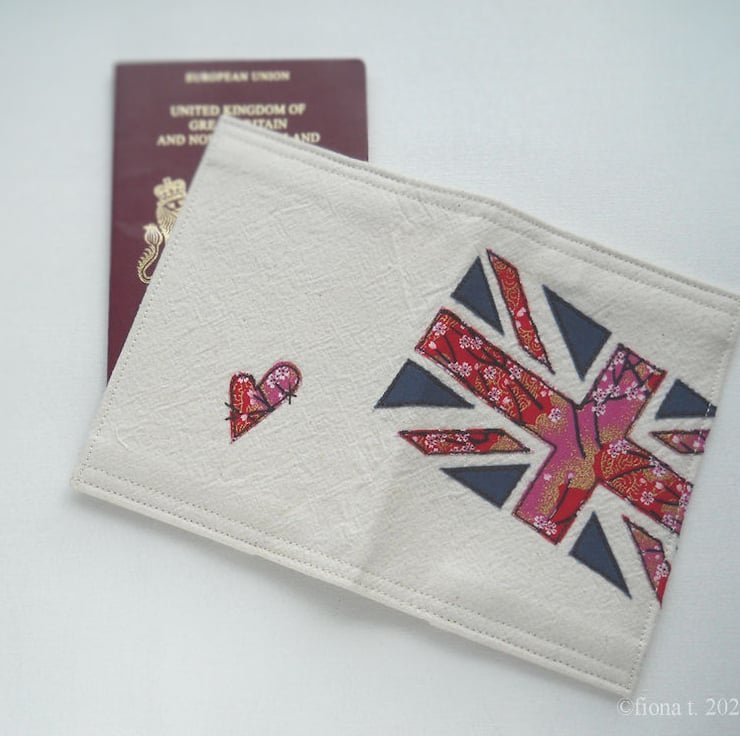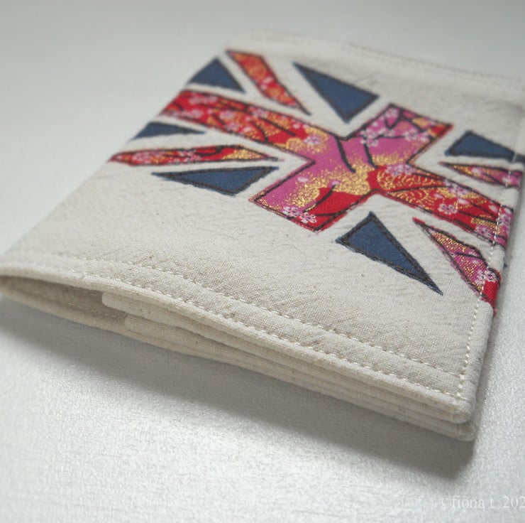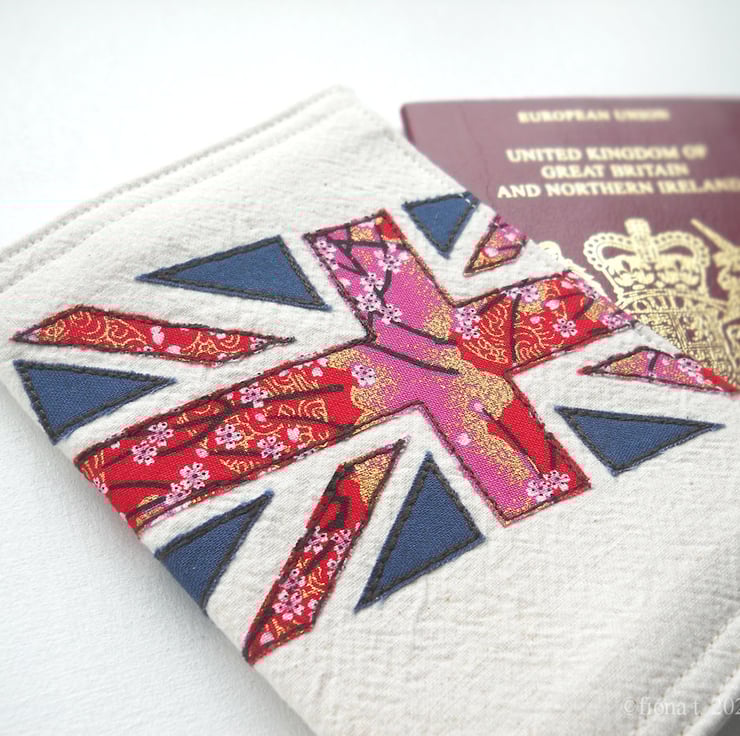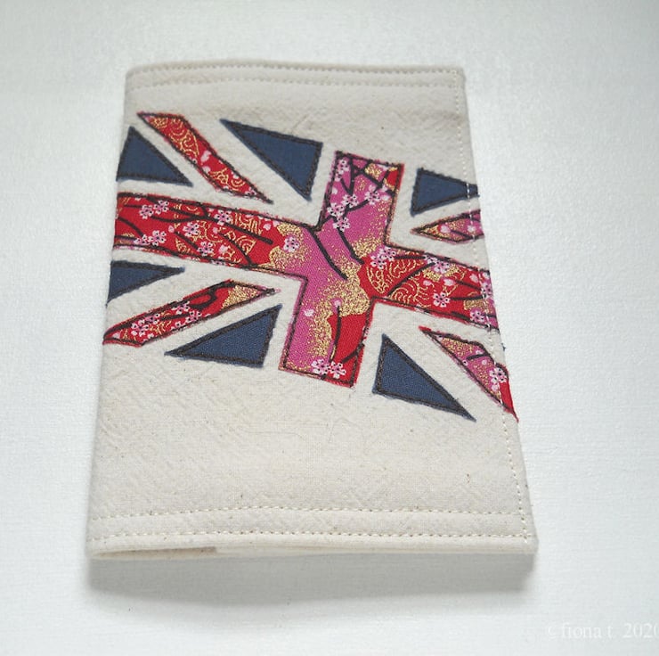 applique and freehand embroidered union flag union jack fabric passport cover.