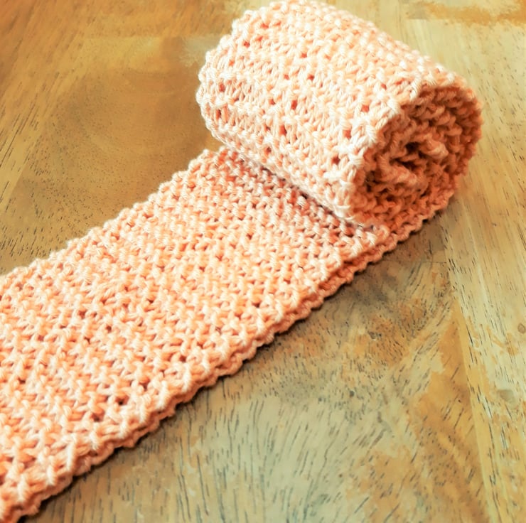 Knitted Organic Cotton Scarf, Naturally Dyed Peach Collour