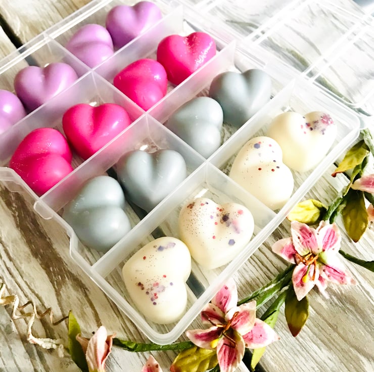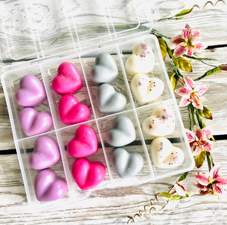 You will receive sixteen Soy Wax Melts, in four individual scents, in a handy wax melt storage case.