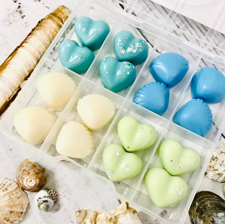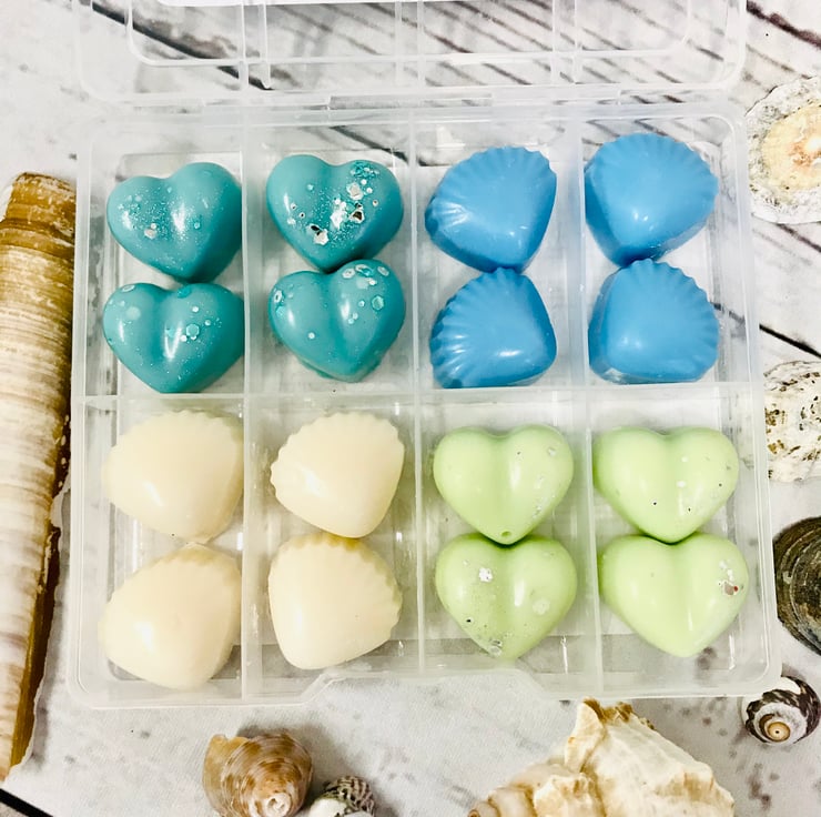 You will receive sixteen Soy Wax Melts, in four individual scents, in a handy wax melt storage case.