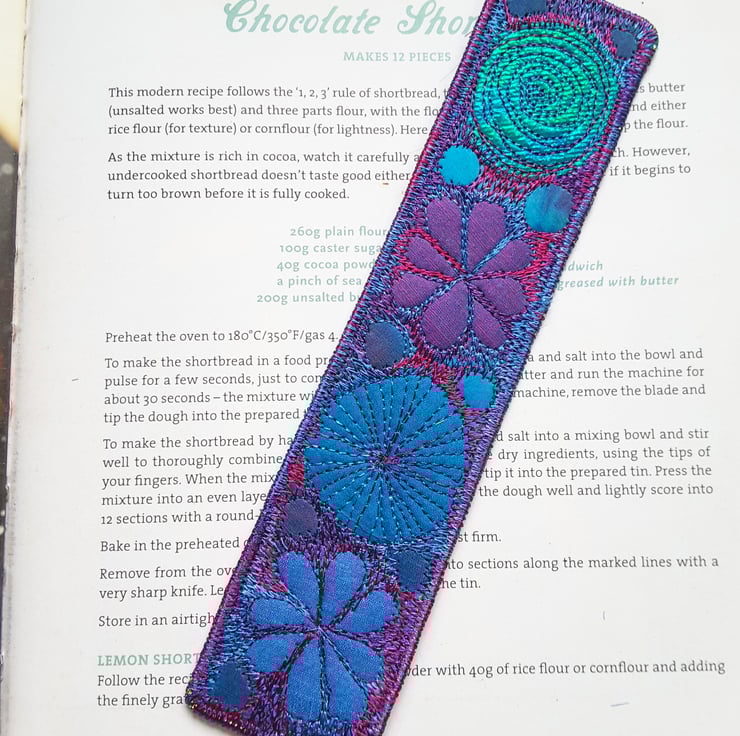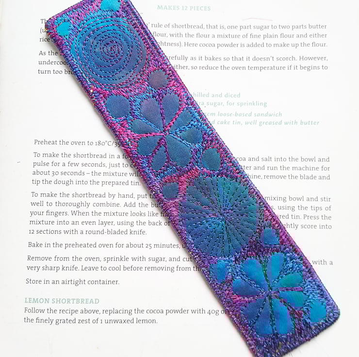 Made from layers of fabric including hand dyed Egyptian cotton and silk fabrics using the free machine embroidery style of sewing