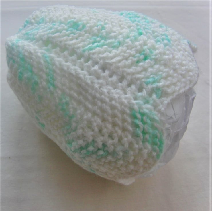 This green flecked hat set is in stock and can be posted to you in 1 - 3 working days but if you require a different colour or size then please allow 1 - 2 weeks processing time to produce it and post it out to you. Available sizes are shown below and please state colour required when you order.