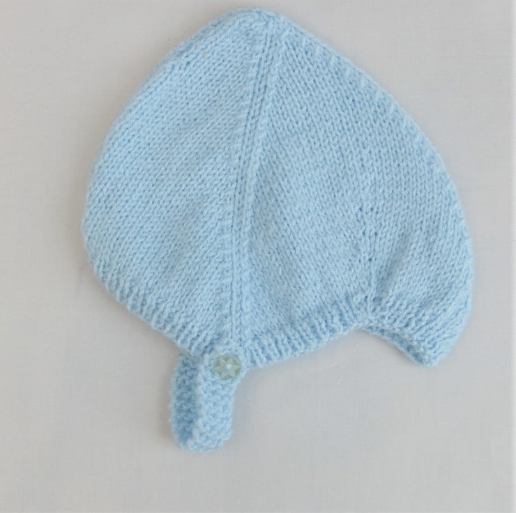 Pale blue hat set, including a helmet, pair of bootees and a pair of mittens for babies from premature to . The set is made to fit a child approximately 0 - 3 months old and is knitted in 4 ply weight yarn.The set would make an ideal gift for a baby shower, new baby or just as something to keep your little ones warm on a chilly day. It would also be a lovely gift to welcome a new premature baby.