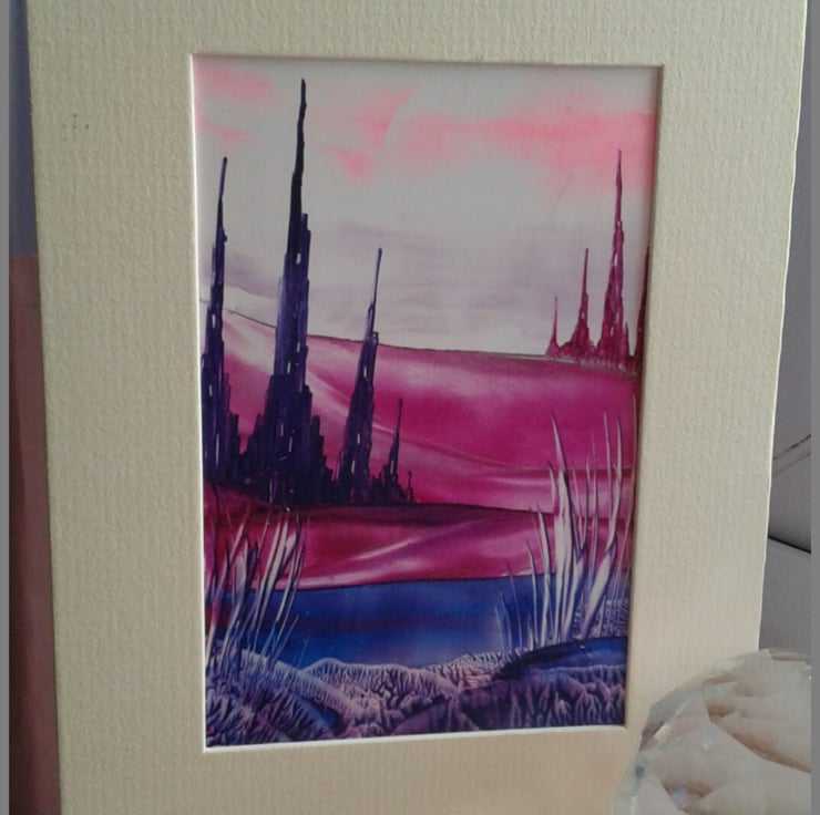 This is an original piece of artwork created on an A6 size piece of encaustic card comes in a mount board frame in a clear bag to keep in clean
