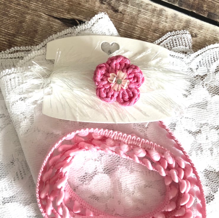 1 x hand crocheted tiny flower with a little embellishment in the centre