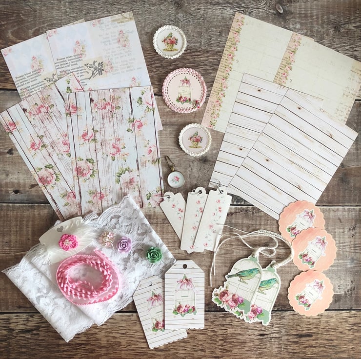 Beautiful Shabby chic inspiration kit .. perfect for journals, card making, mini albums etc ...