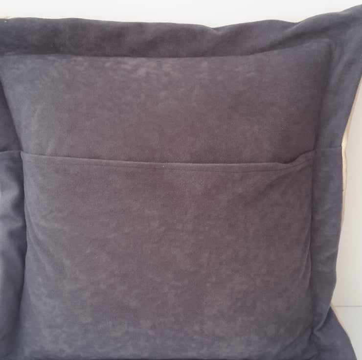 The cushion cover back is an envelope style and has been made with a lovely soft faux suede in grey.