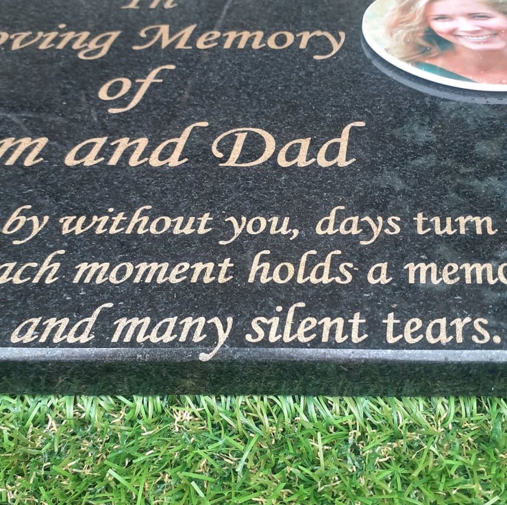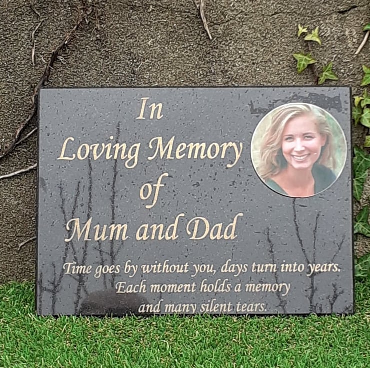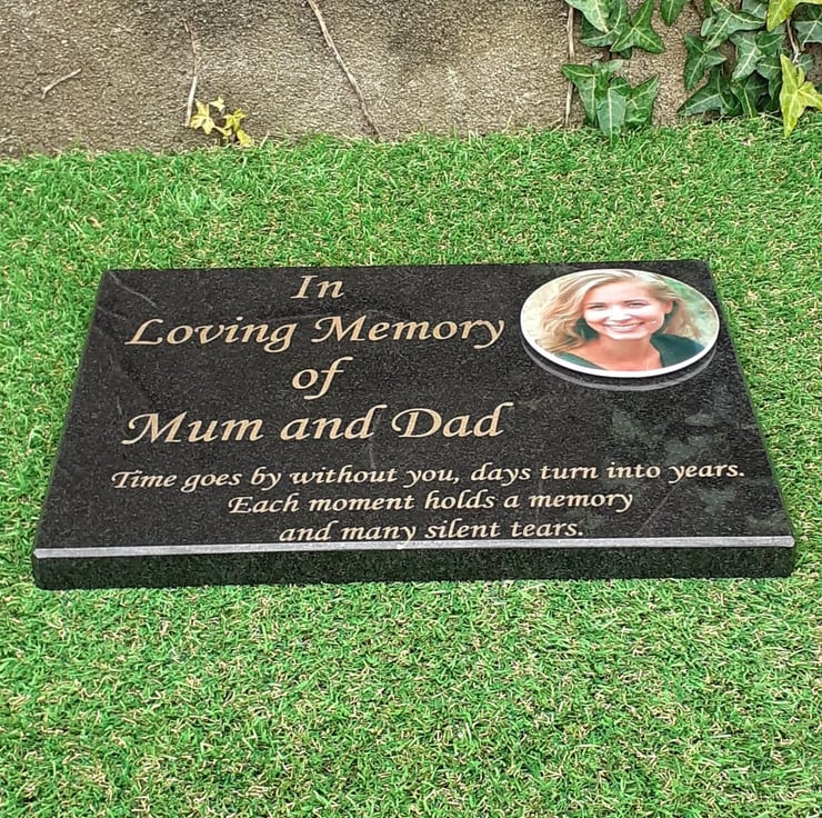 This is a one off 12x9 and weighs approx 5 kg Black granite Engraved grave marker with full colour photo