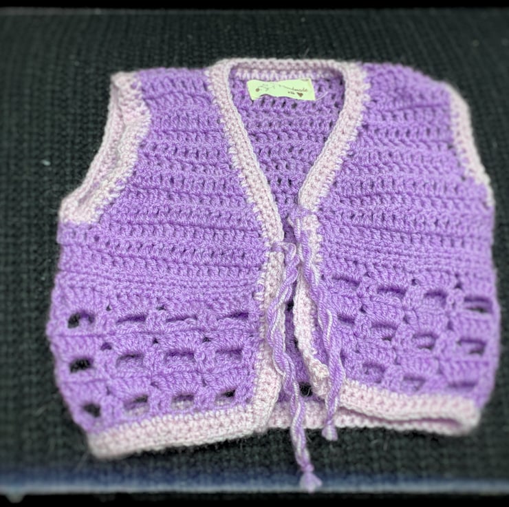 Cardigan waist coat and matching hat. In approximate size 3 months plus.