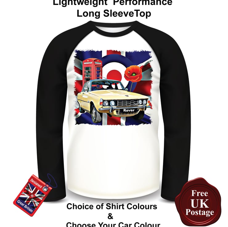 Rover P6 Long Sleeve T Shirt, Rover P6 Top, Mens T Shirts,Men's Baseball Top Long Sleeves Choose Your Colour & Size, This is a fan Inspired unofficial product the art work designed by us Aggies Bags the 160 gsm Featuring a lean design this 65% Polyester 35% Cotton lightweight performance T Shirt printed by us with a cotton-feel Polyester 180gsm (front and back) with 65% Polyester 35% cotton 160gsm (arms and neck) means it is a good quality garment for any occasion T Shirt ideal for the summer or holiday t shirt with an even and smooth surface Comfortable body length construction for a perfect look Side seams ensure the best fit For long-lasting comfort the neck seams are reinforced with soft binding Thin collar in self-fabric for modern up to date appearance Minimalist cut and detailing suitable for many uses and any end user requirements.