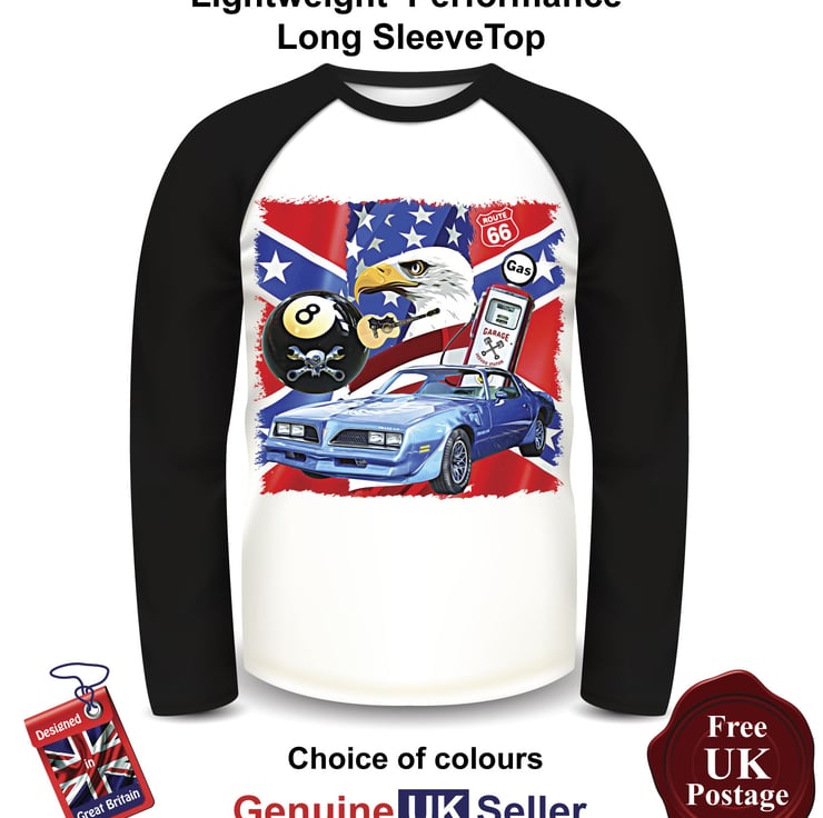 Blue Pontiac Trans AM Tops, Pontiac Trans AM Mens Long Sleeve T Shirt, Mens T Shirts,Men's Baseball Top Long Sleeves Choose Your Colour & Size, This is a fan Inspired unofficial product the art work designed by us Aggies Bags the 160 gsm Featuring a lean design this 65% Polyester 35% Cotton lightweight performance T Shirt printed by us with a cotton-feel Polyester 180gsm (front and back) with 65% Polyester 35% cotton 160gsm (arms and neck) means it is a good quality garment for any occasion T Shirt ideal for the summer or holiday t shirt with an even and smooth surface Comfortable body length construction for a perfect look Side seams ensure the best fit For long-lasting comfort the neck seams are reinforced with soft binding Thin collar in self-fabric for modern up to date appearance Minimalist cut and detailing suitable for many uses and any end user requirements.