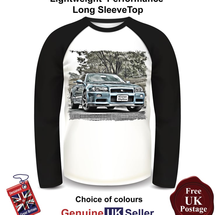 Nissan Skyline, Skyline Mens Top, Long Sleeve Blue Skyline T Shirt, Mens T Shirts,Men's Baseball Top Long Sleeves Choose Your Colour & Size, This is a fan Inspired unofficial product the art work designed by us Aggies Bags the 160 gsm Featuring a lean design this 65% Polyester 35% Cotton lightweight performance T Shirt printed by us with a cotton-feel Polyester 180gsm (front and back) with 65% Polyester 35% cotton 160gsm (arms and neck) means it is a good quality garment for any occasion T Shirt ideal for the summer or holiday t shirt with an even and smooth surface Comfortable body length construction for a perfect look Side seams ensure the best fit For long-lasting comfort the neck seams are reinforced with soft binding Thin collar in self-fabric for modern up to date appearance Minimalist cut and detailing suitable for many uses and any end user requirements.