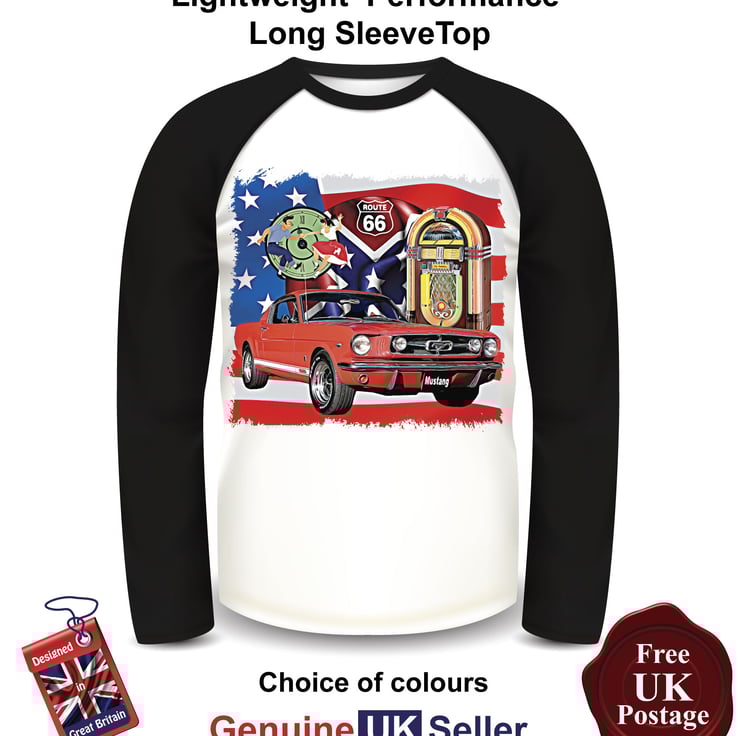 Mustang Fastback Men Long Sleeve T Shirt, Red Mustang Mens Top, Mens T Shirts,Men's Baseball Top Long Sleeves Choose Your Colour & Size, This is a fan Inspired unofficial product the art work designed by us Aggies Bags the 160 gsm Featuring a lean design this 65% Polyester 35% Cotton lightweight performance T Shirt printed by us with a cotton-feel Polyester 180gsm (front and back) with 65% Polyester 35% cotton 160gsm (arms and neck) means it is a good quality garment for any occasion T Shirt ideal for the summer or holiday t shirt with an even and smooth surface Comfortable body length construction for a perfect look Side seams ensure the best fit For long-lasting comfort the neck seams are reinforced with soft binding Thin collar in self-fabric for modern up to date appearance Minimalist cut and detailing suitable for many uses and any end user requirements.