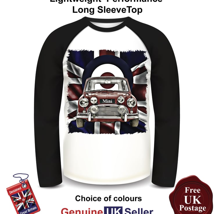 Mini Cooper Long Sleeve Mens T Shirt, Old Mini Top, Mens Mini Top, Mens T Shirts,Men's Baseball Top Long Sleeves Choose Your Colour & Size, This is a fan Inspired unofficial product the art work designed by us Aggies Bags the 160 gsm Featuring a lean design this 65% Polyester 35% Cotton lightweight performance T Shirt printed by us with a cotton-feel Polyester 180gsm (front and back) with 65% Polyester 35% cotton 160gsm (arms and neck) means it is a good quality garment for any occasion T Shirt ideal for the summer or holiday t shirt with an even and smooth surface Comfortable body length construction for a perfect look Side seams ensure the best fit For long-lasting comfort the neck seams are reinforced with soft binding Thin collar in self-fabric for modern up to date appearance Minimalist cut and detailing suitable for many uses and any end user requirements.