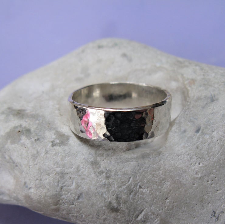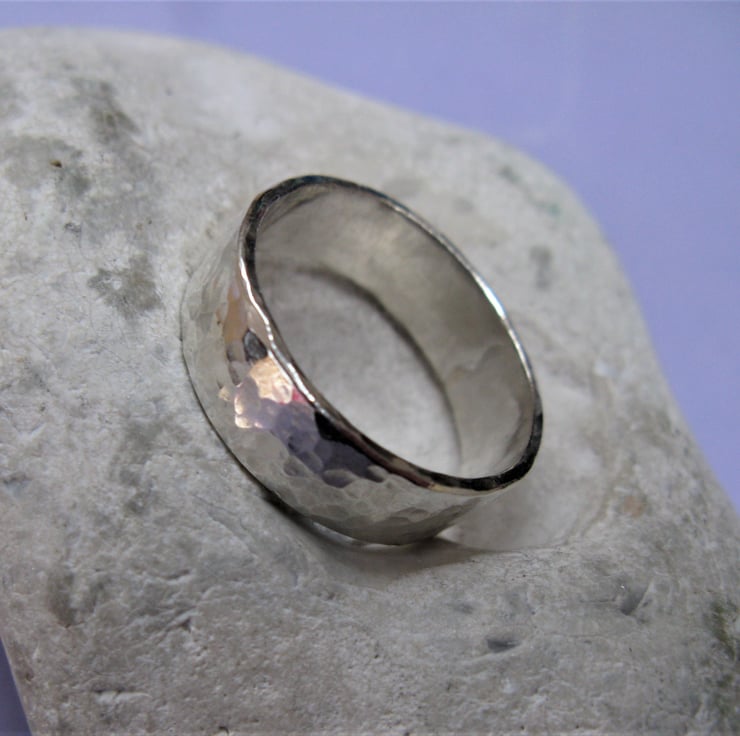 This elegnat ring is made from sterling silver with a high polished hammered finish.