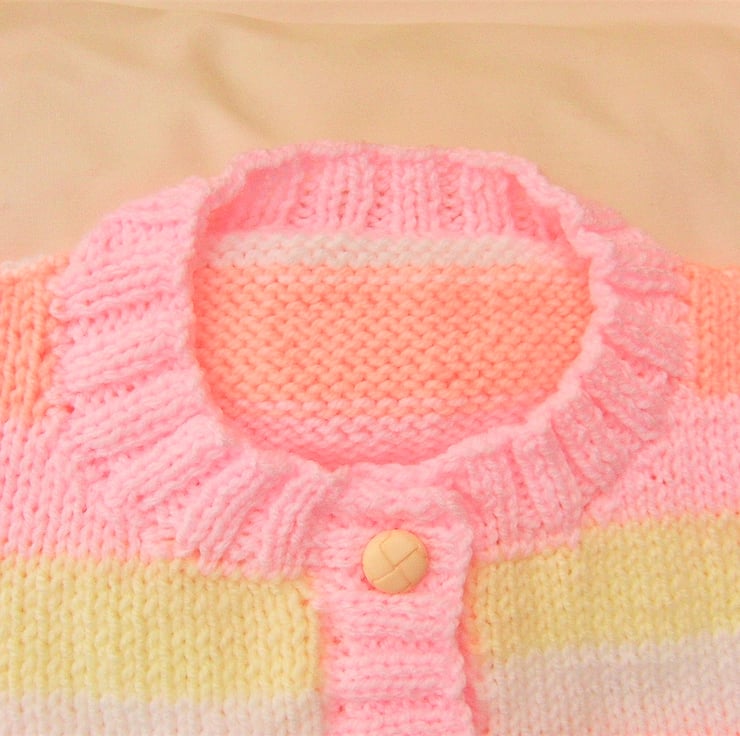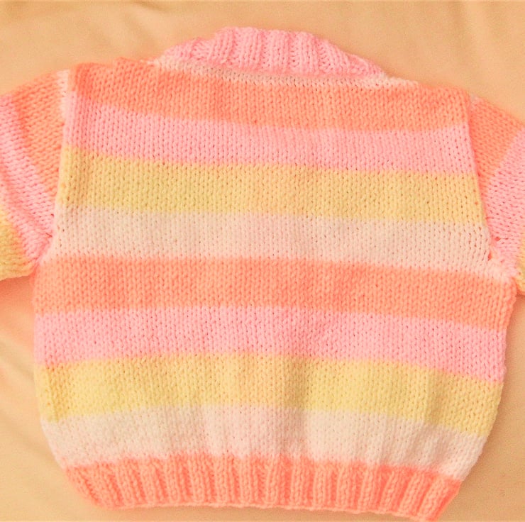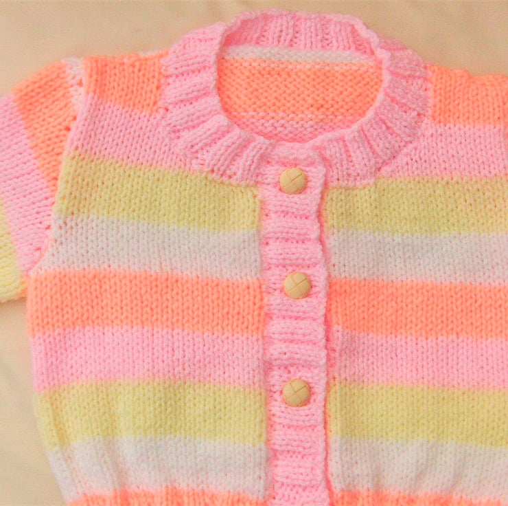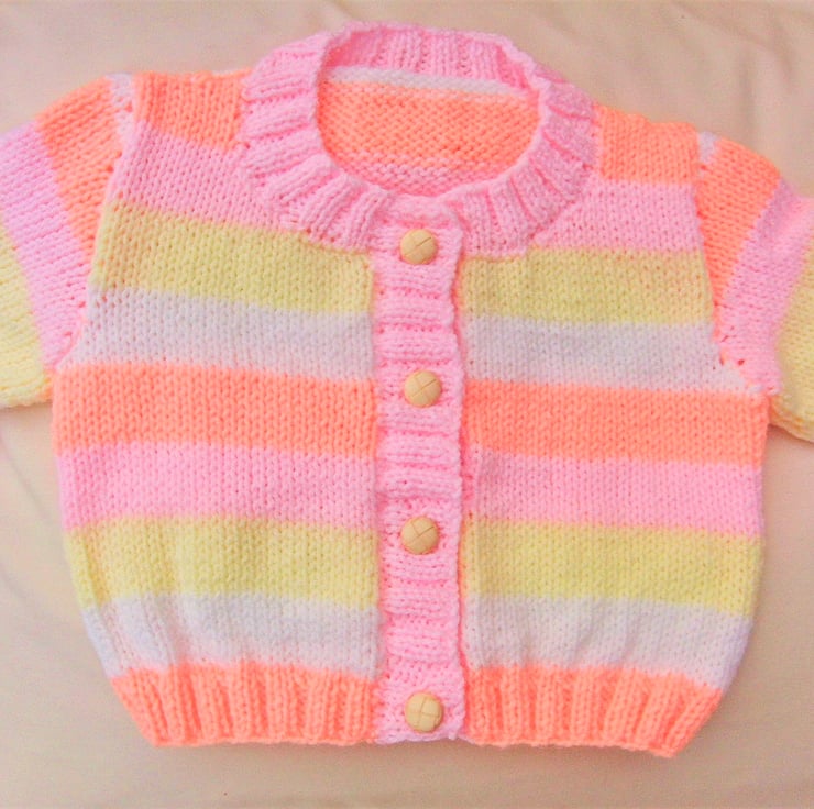 Girls plain cardigan with either 3/4 length sleeves or short sleeves. The cardigan is not in stock but it can be made for you in a single colour or in different coloured stripes, and in a size of your choice. Just send me a message to let me know the colour(s) that you require and whether you would like 3/4 or short sleeves. Available sizes are shown at the bottom of this listing. The processing time for this item will be 1 - 2 weeks to produce and post to you.