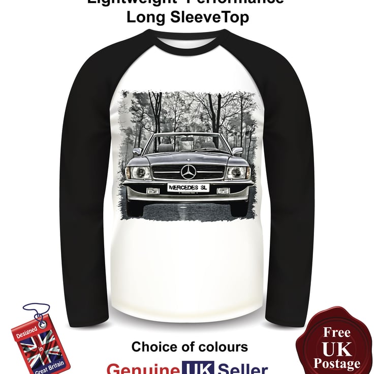 Old Mercedes Sl Mens Top, Convertible Sl Long Sleeve T Shirt ,Mens T Shirts,Men's Baseball Top Long Sleeves Choose Your Colour & Size, This is a fan Inspired unofficial product the art work designed by us Aggies Bags the 160 gsm Featuring a lean design this 65% Polyester 35% Cotton lightweight performance T Shirt printed by us with a cotton-feel Polyester 180gsm (front and back) with 65% Polyester 35% cotton 160gsm (arms and neck) means it is a good quality garment for any occasion T Shirt ideal for the summer or holiday t shirt with an even and smooth surface Comfortable body length construction for a perfect look Side seams ensure the best fit For long-lasting comfort the neck seams are reinforced with soft binding Thin collar in self-fabric for modern up to date appearance Minimalist cut and detailing suitable for many uses and any end user requirements.