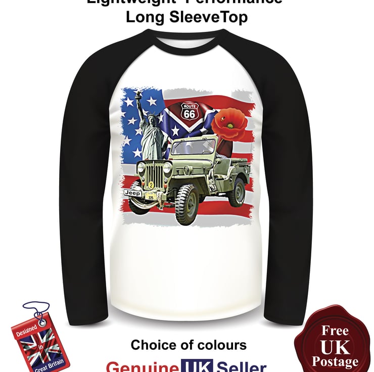 Jeep Willy, Green Jeep Mens Long Sleeve T Shirt, Jeep Willy Mens Top, Mens T Shirt, Mens T Shirts,Men's Baseball Top Long Sleeves Choose Your Colour & Size, This is a fan Inspired unofficial product the art work designed by us Aggies Bags the 160 gsm Featuring a lean design this 65% Polyester 35% Cotton lightweight performance T Shirt printed by us with a cotton-feel Polyester 180gsm (front and back) with 65% Polyester 35% cotton 160gsm (arms and neck) means it is a good quality garment for any occasion T Shirt ideal for the summer or holiday t shirt with an even and smooth surface Comfortable body length construction for a perfect look Side seams ensure the best fit For long-lasting comfort the neck seams are reinforced with soft binding Thin collar in self-fabric for modern up to date appearance Minimalist cut and detailing suitable for many uses and any end user requirements.