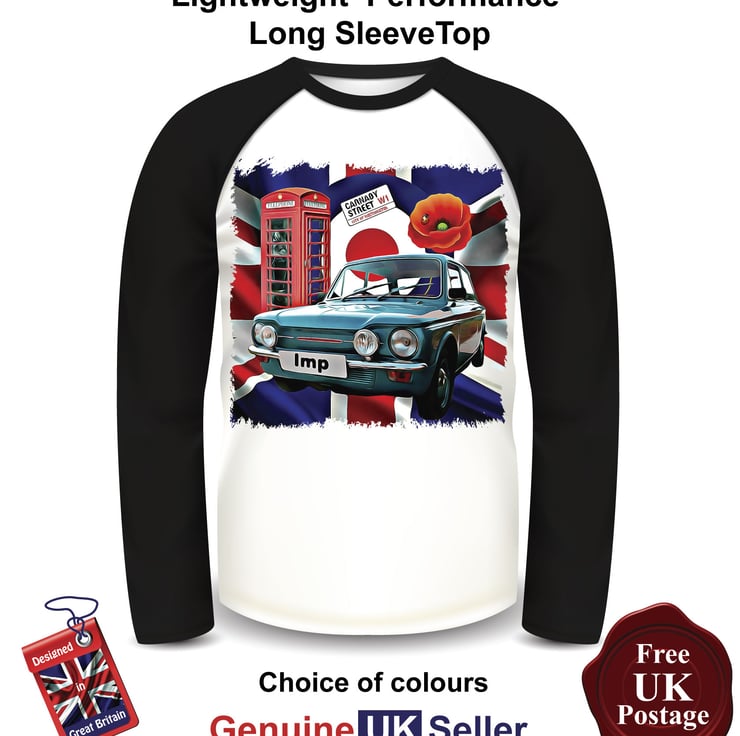 Hillman Imp, Blue Hillman Imp Top, Hillman Imp Long Sleeve Mens T Shirt, Mens T Shirts,Men's Baseball Top Long Sleeves Choose Your Colour & Size, This is a fan Inspired unofficial product the art work designed by us Aggies Bags the 160 gsm Featuring a lean design this 65% Polyester 35% Cotton lightweight performance T Shirt printed by us with a cotton-feel Polyester 180gsm (front and back) with 65% Polyester 35% cotton 160gsm (arms and neck) means it is a good quality garment for any occasion T Shirt ideal for the summer or holiday t shirt with an even and smooth surface Comfortable body length construction for a perfect look Side seams ensure the best fit For long-lasting comfort the neck seams are reinforced with soft binding Thin collar in self-fabric for modern up to date appearance Minimalist cut and detailing suitable for many uses and any end user requirements.