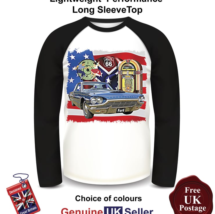 Ford Thunderbird, Ford Thunderbird Mens Long Sleeve T Shirt, Ford Mens Top, Mens T Shirts,Men's Baseball Top Long Sleeves Choose Your Colour & Size, This is a fan Inspired unofficial product the art work designed by us Aggies Bags the 160 gsm Featuring a lean design this 65% Polyester 35% Cotton lightweight performance T Shirt printed by us with a cotton-feel Polyester 180gsm (front and back) with 65% Polyester 35% cotton 160gsm (arms and neck) means it is a good quality garment for any occasion T Shirt ideal for the summer or holiday t shirt with an even and smooth surface Comfortable body length construction for a perfect look Side seams ensure the best fit For long-lasting comfort the neck seams are reinforced with soft binding Thin collar in self-fabric for modern up to date appearance Minimalist cut and detailing suitable for many uses and any end user requirements.